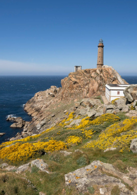 and coves, and a rough sea with waves that seem to imitate the lace of toothpicks; At the mouth of the estuary, the hermitage of A Virxe do Monte, the lighthouse of Vilán and the sanctuary of A Virxe da Barca, the latter in Muxía, welcome those who arrive by sea.